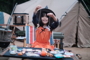 本当はもっといっぱい飾って、焚き火台とかテントまで設営できてたら雰囲気も出ていいな~とか思ってたのに、想定の半分もできず、、、