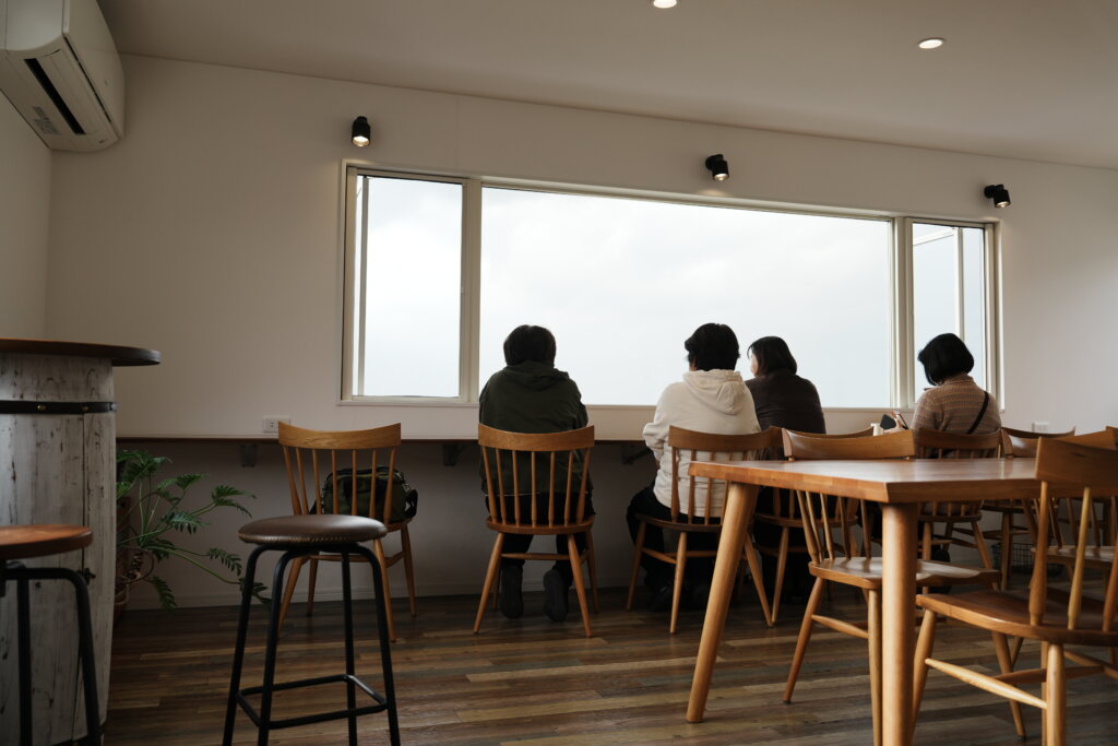 そう、一番海が見えるカウンター席がすべて仲良しマダムたちで埋まっておりまして…