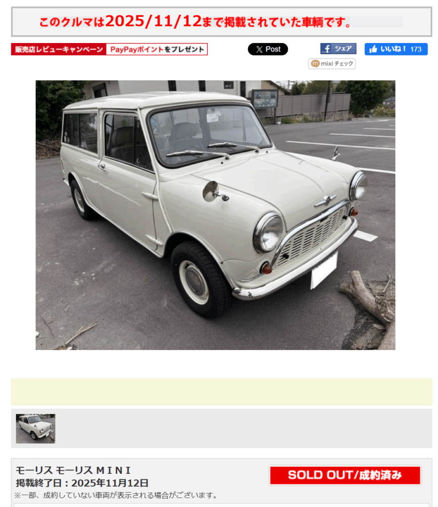 ご自身も昔、ミニの長モノに乗られていたらしくって、嬉しいからあげる!!とか言って!