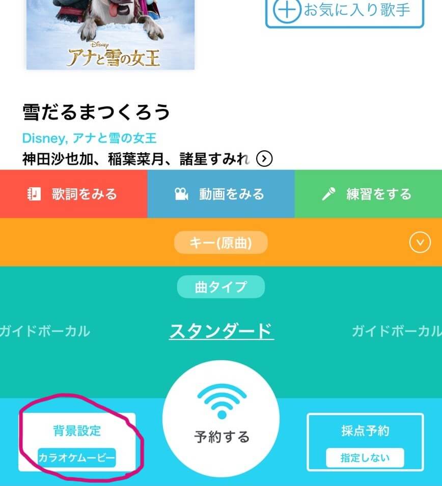 あと気にしてほしいのは、スマホのデンモクアプリで、曲を送信する画面の左下に背景を選ぶところがあって、ここがスペシャルムービーになっていないかチェックして!